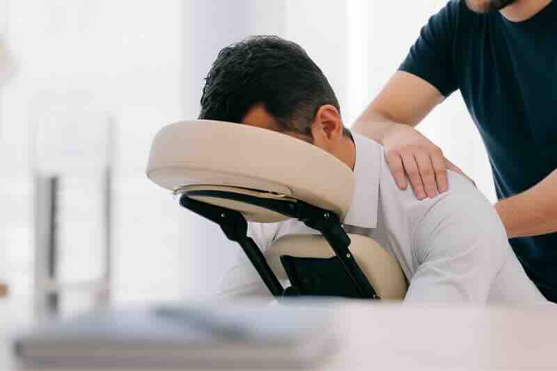 Geniet van 15 minuten drukpuntmassage zonder u uit te kleden. Stoelmassage verlicht spanning in nek, schouders en rug